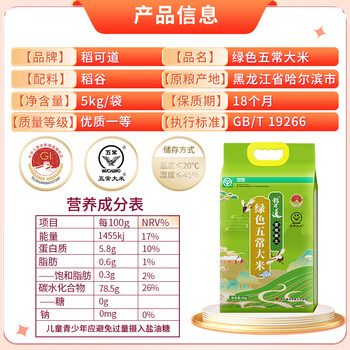 稻可道五常大米 绿色食品认证 东北大米10斤 当季新米