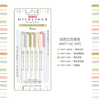 斑马牌 (ZEBRA)荧光笔 WKT7 5色套装 自然系列 双头荧光笔 学生标记笔记号笔 WKT7-5C-NTC