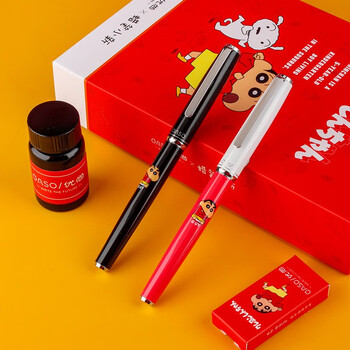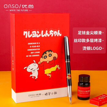 【开学必备】优尚(OASO)钢笔高端学生钢笔 蜡笔小新IP联名款 萌趣墨水笔礼盒套装墨水礼盒中性签字笔趣味黑暗尖