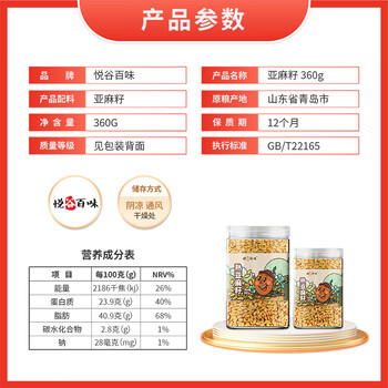 悦谷百味 黄金熟亚麻籽360g (可磨亚麻籽粉 五谷杂粮 烘焙 可榨油)