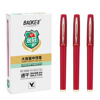 宝克(BAOKE)宝克 BAOKE PC1838A 大容量中性笔0.7mm 日常书写办公签字笔水笔 红色 12支/盒