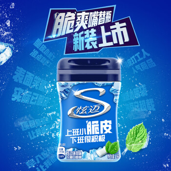 炫迈 脆皮无糖口香糖 薄荷味 40粒56g1瓶 糖果零食 清新口气 提神便携