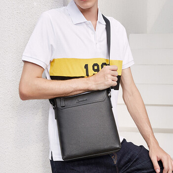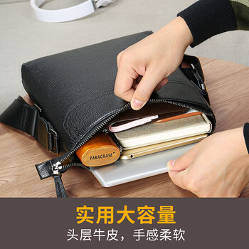 稻草人男士单肩斜挎真头层牛皮通勤挂包商务时尚出差轻便情人节礼物