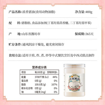 云山半浓香食用猪油400g 中秋节月饼烘焙材料蛋黄酥起酥油炒菜拌饭白油