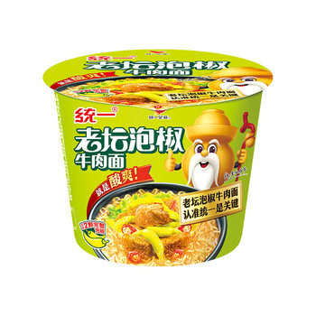 统一来一桶泡椒牛肉桶面105g*12桶 方便面 整箱装酸辣过瘾速食泡面