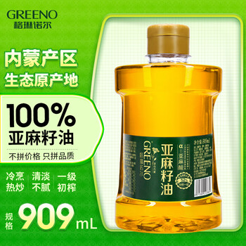 格琳诺尔【保真亚麻籽油】一级冷榨食用油909ml可炒菜 补充亚麻酸omega3