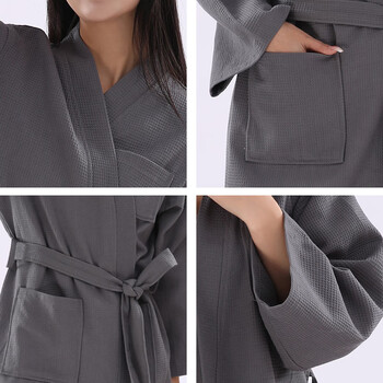 竹一百浴袍 纯棉吸水浴衣简约家居浴袍汗蒸服华夫格男女睡袍 灰色 M码