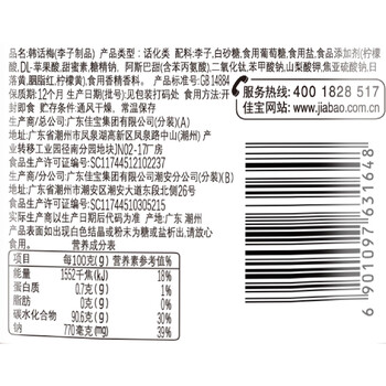 佳宝 果脯蜜饯果干类 话梅李子零食情人梅清甜酸李 韩话梅210G