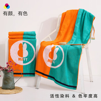 金号米菲联名款浴巾纯棉100%澡巾A类撞色个性全棉浴巾