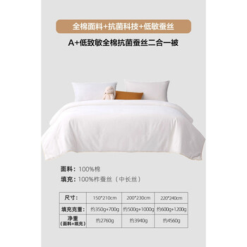 A+低致敏全棉抗菌蚕丝二合一被
