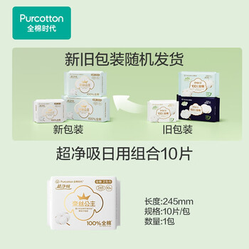 全棉时代(Purcotton)卫生巾 奈丝公主青春版日用超薄245mm,10片/包*3包