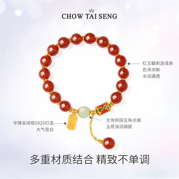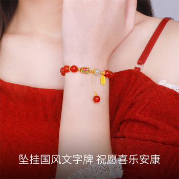 周大生【生日礼物】喜乐安康牌女款和田玉红豆手串国风送女友