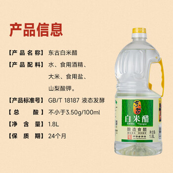 东古 白米醋1.8L 酿造白醋食醋炒菜凉拌蘸料大瓶装
