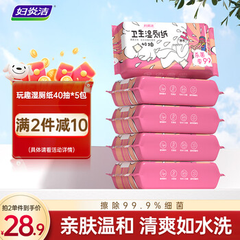 妇炎洁玩趣湿厕纸40抽*5包 免洗私处擦屁股清洁杀菌湿巾纸男女通用
