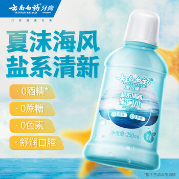 云南白药漱口水夏沫海风含盐养龈洁净清新减轻口气0酒精便携套装250ml*3