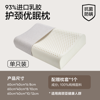 网易严选泰国进口乳胶枕头 93%含量天然原液乳胶枕米色天竺棉枕套 优眠款