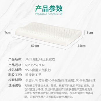 JACE新升级超薄乳胶枕白色60*35*5/7cm