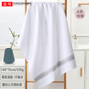 金号新疆棉浴巾A类纯棉柔软吸水情侣洗澡巾 单条装140*72cm 320g 白色