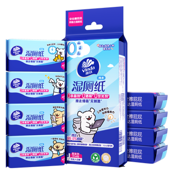 维达(Vinda)湿厕纸便携小包7片*8包线条小狗湿厕纸纯水湿纸巾湿纸巾学生外出