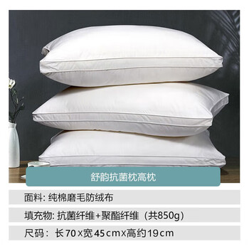 富安娜家纺枕芯纯棉面料抗菌枕头芯成人软枕酒店枕纤维枕高枕70*45cm