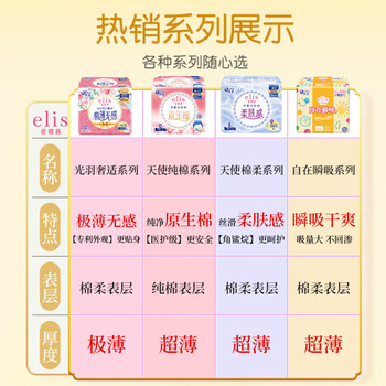 爱璐茜elis大王 日用卫生巾 光羽奢适系列 极薄棉柔 180mm*14p