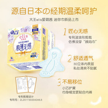 爱璐茜(elis)大王迷你卫生巾日用光羽奢适极薄棉柔 180mm 14片瞬吸护垫姨妈巾
