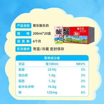 菊乐(JULE )酸乐奶含乳饮料200ml*20盒*1
