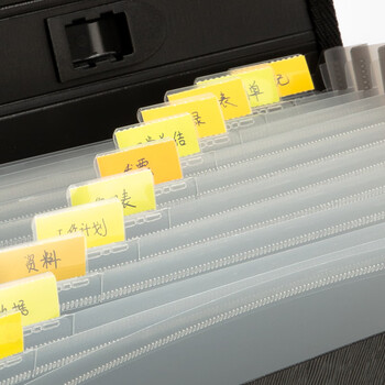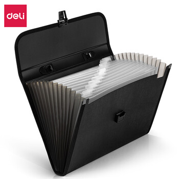 得力(deli)5232风琴包(黑)3个13格A4手提文件包/文件夹/资料夹 多层时尚手提会议事务包