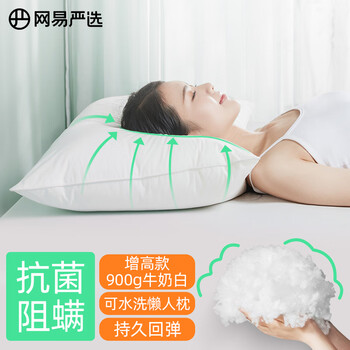 网易严选可水洗懒人枕酒店枕头 A类全枕可机洗 48*74cm增高款900g牛奶白