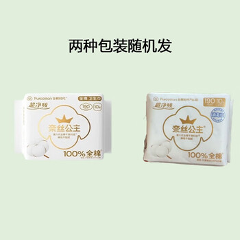 全棉时代奈丝公主卫生巾超净吸超薄护翼护垫迷你巾190mm10片*6包 包装随机