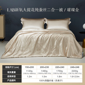 LAB新氧大提花纯蚕丝二合一被:璀璨金 200*230 480g+1000g