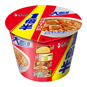 康师傅 方便面 一倍半红烧牛肉面136g*12桶 泡面整箱速食 大面饼