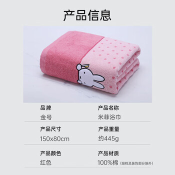 金号毛巾 米菲系列 纯棉吸水浴巾卡通洗澡裹巾 单条装红色150*80cm