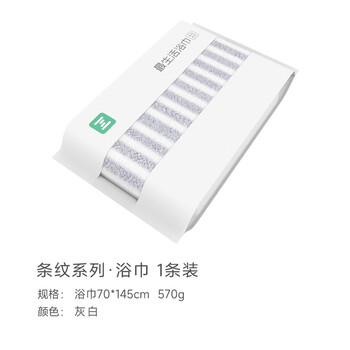 最生活轻奢条纹加厚大浴巾 纯棉A类成人大浴巾 柔软吸水速干洗澡巾 灰白