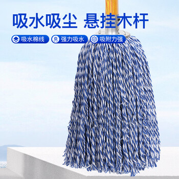 木杆拖把 棉线拖把 胶棉拖把海绵拖把 酒店大堂老式墩布尘推拖布工厂医院学校商超物业吸水拖把 蓝白*1