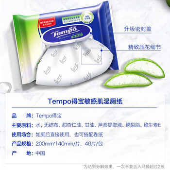 得宝芦荟湿厕纸 40片便携装私处洁阴湿厕纸巾成人卫生洁肤湿纸巾*10包
