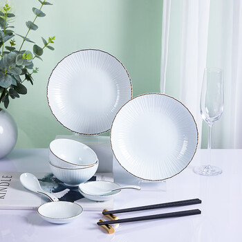 产品材质:餐具:高温瓷;筷子:PET+玻璃纤维 产品参数:盘子×2 碗×2 调羹×2 碟子×2 筷子×2双