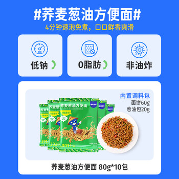 鲨鱼菲特 荞麦面葱油面 0脂肪方便面带酱料免煮泡拌面方便食品80g*10袋