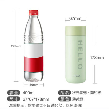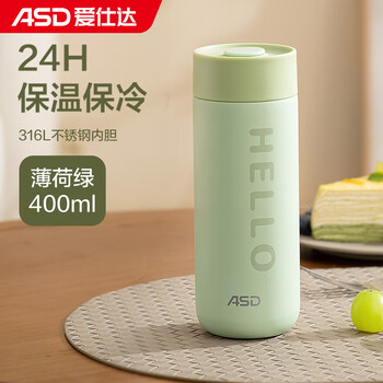 爱仕达(ASD)316L不锈钢真空保温杯 家用办公学生水杯 长效保温 400ml 薄荷绿