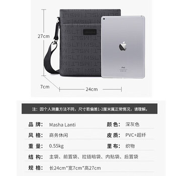 马莎兰缇(MashaLanti)商务单肩斜挎包便携男包休闲高档大容量男士小方包生日礼物送男友