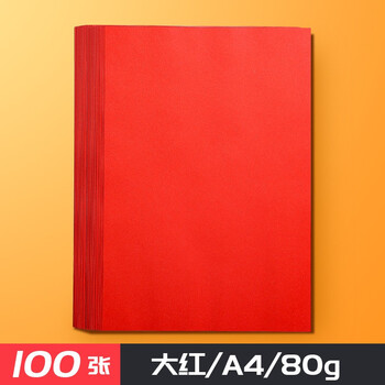 互信a4彩纸彩色打印纸手工折纸红色粉色混色80g克纸黄色广告复印纸办公用品 A4-80克(大红)100张/包