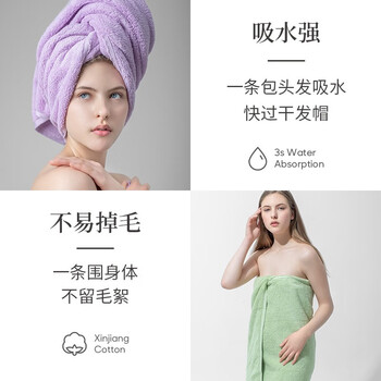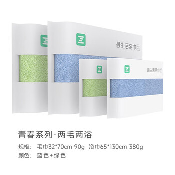 最生活毛巾浴巾组合4条装 A类纯棉柔软吸水洗脸毛巾 酒店速干成人大浴巾