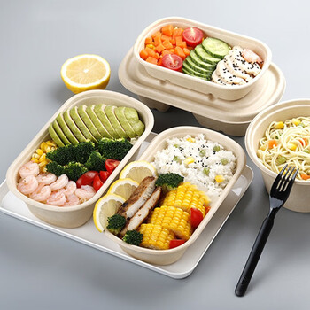 佳茉 一次性饭盒可降解餐盒1000ml*50套甘蔗纸浆外卖打包保鲜饭盒