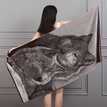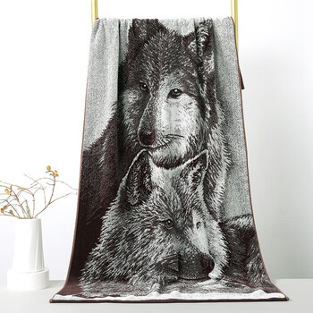 金号狼图腾 A类纯棉浴巾男士成人澡巾个性加厚大浴巾