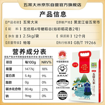 五常大米 官方溯源保真 京贡1号 当季新米 五常稻花香2号 东北大米 2.5kg/5斤×1