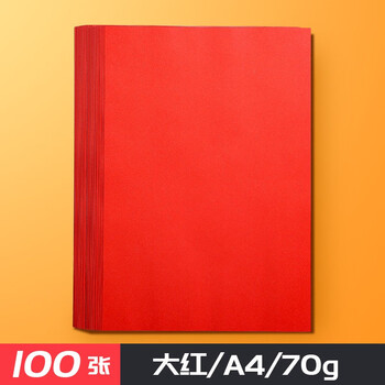 互信a4彩纸彩色打印纸手工折纸红色粉色混色80g克纸黄色广告复印纸办公用品 A4-70克(大红)100张/包