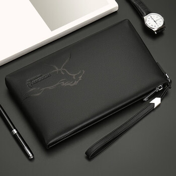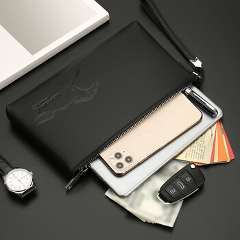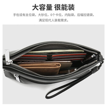 稻草人男士手包头层牛皮手拿包多卡位拉链信封包手夹钱包生日礼物