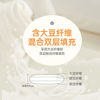 床上用品---枕头---纤维枕多喜爱(Dohia)全棉60S分区刺绣大豆纤维枕(可爱熊)