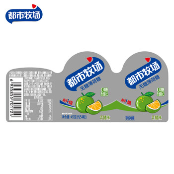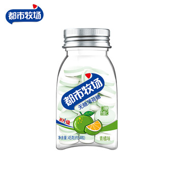 都市牧场 无糖薄荷糖 青橘味 45g 维生素C 口香糖 水果味 休闲零食 糖果