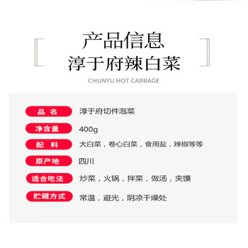淳于府 切件泡菜 400g 韩式风味辣白菜 酸菜下饭拌饭菜酱菜 开袋即食